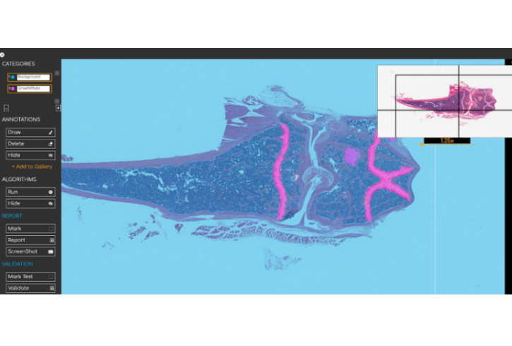 The DeePathology® STUDIO is an interactive Do it Yourself platform for AI in pathology. Researchers and pathologists can create powerful AI solutions for histological image analysis and use these algorithms to create powerful analytics on new pathology slides. Create proof of concepts (PoC) for most problems - in 5 minutes, no computer coding required!
